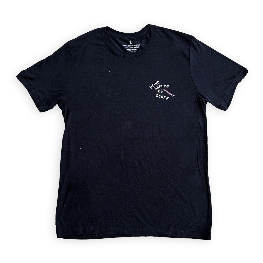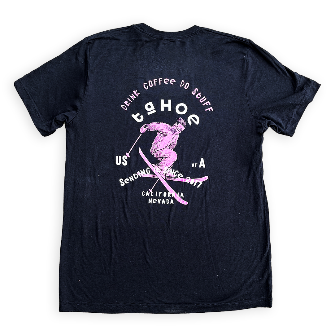If we could sum up the DRINK COFFEE DO STUFF journey in a t-shirt, this would be it. A black tee (because the real ones take their coffee black) with a super fun pink graphic of a skier sending it on the back, with a simple "drink coffee do stuff" slogan on the front. This unisex triblend tee wears comfortably; the perfect layering piece for those backcountry mornings where you get surprisingly hot burning calories up the summit. Throw it on, fuel up, and get after it.